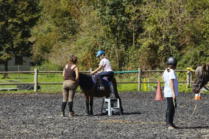 Nos installations – 3 box, une carrière, un rond de longe, un mountain trail et une carrière extérieure PTV – sont au service d’une équitation de tout terrain, tournée vers l’aventure et la complicité.